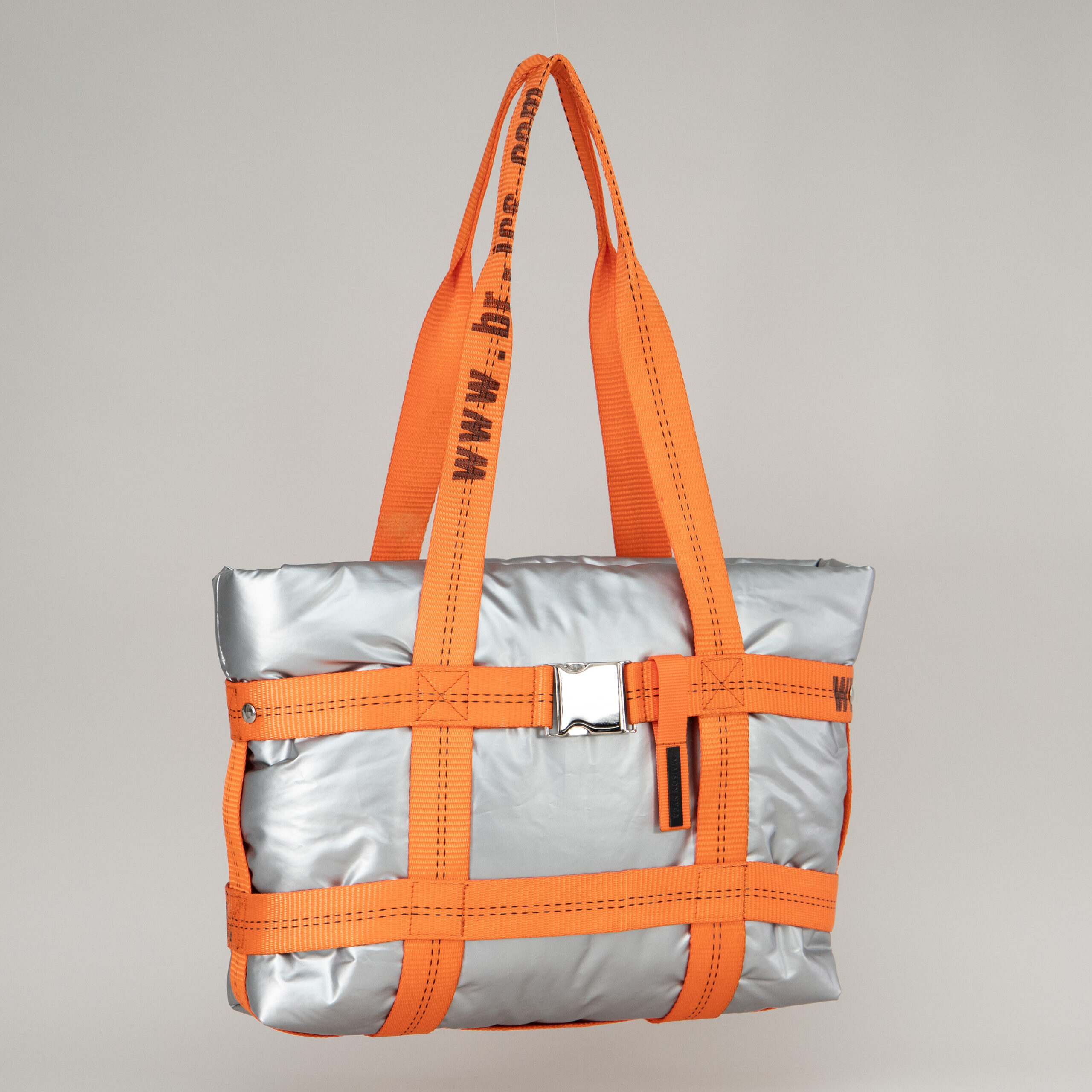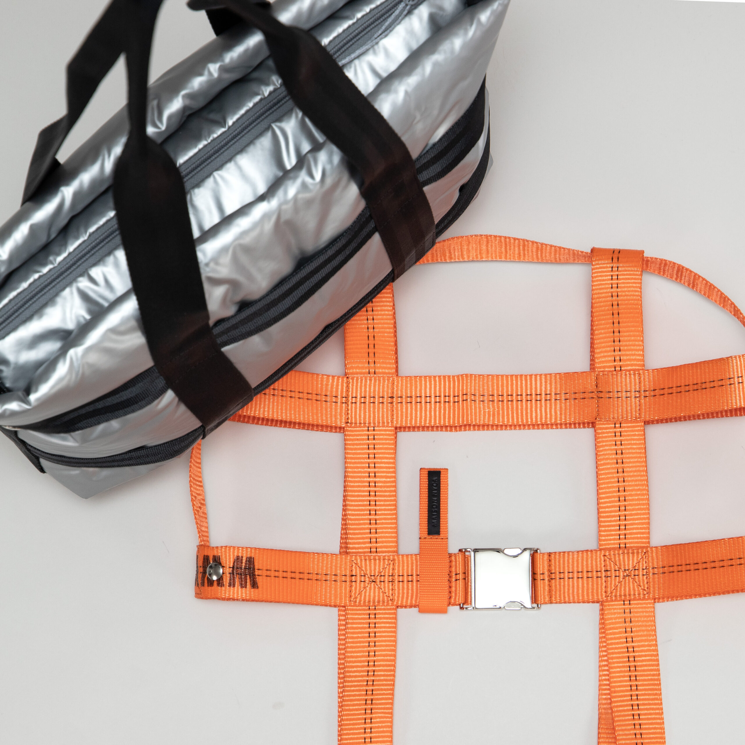 Dazu gehören Autogurte und Schwerlastgurte aus der Industrie, die ursprünglich für extreme Belastungen entwickelt wurden. Ihre charakteristischen Farben – etwa leuchtendes Orange oder Giftgrün – sind bewusst Teil des Designs geworden und geben jeder Tasche ihren unverwechselbaren Charakter.